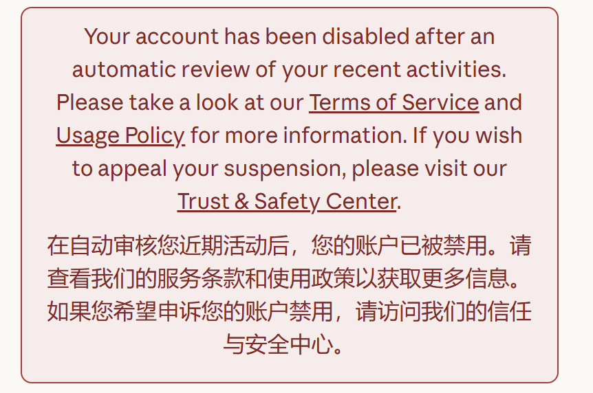 而且,这个封号,不是不让我用模型,而是我连对话都进不去,直接在登录的时候就被卡住了。