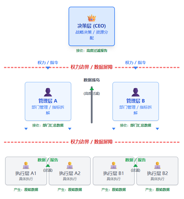 在马克斯·韦伯(Max Weber)所定义的经典科层制(Bureaucracy)组织中,信息的不对称是权力存在的基础。部门墙、审批流、数据权限,这些设计的初衷就是为了控制信息的流动,以匹配金字塔式的权力分配。