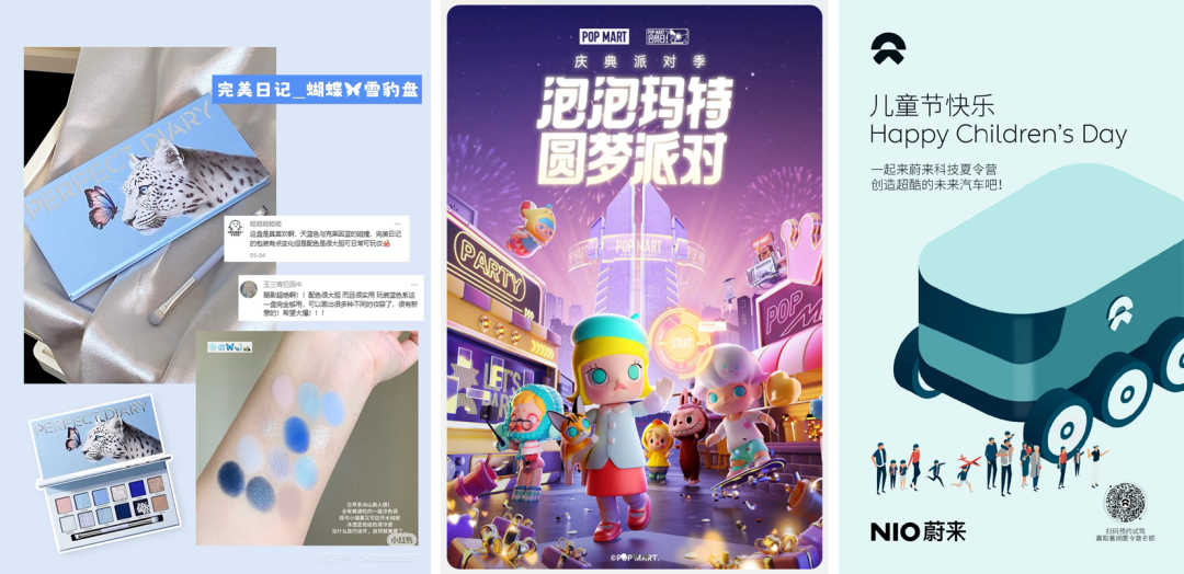 完美日记早期靠小红书+B站+KOC组合引流,线下体验店则强调免费试妆、彩妆教程,顺势引导加企微、入社群,后续靠小程序、直播反复触达,形成闭环。