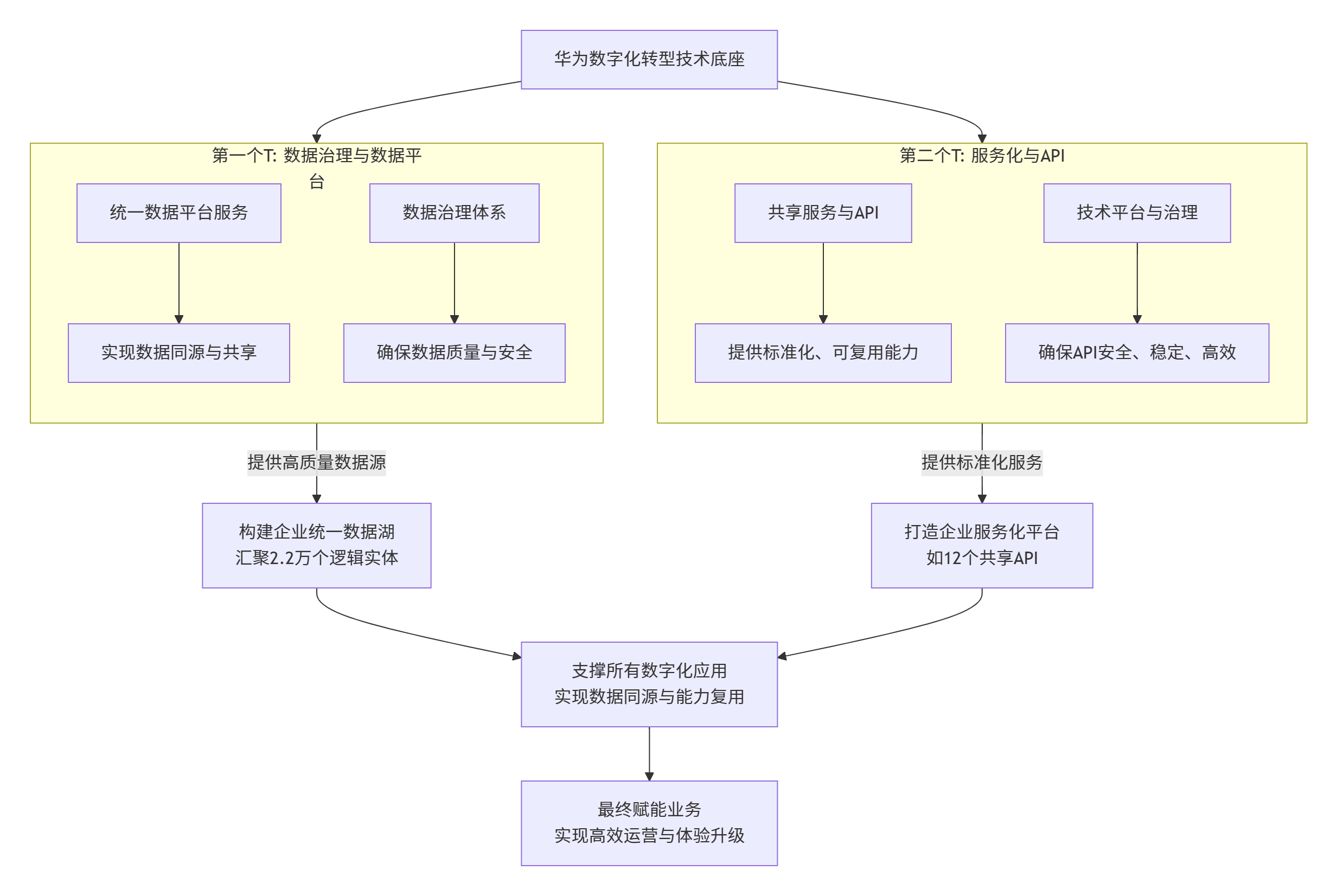 在华为的数字化转型中,“两个T型结构” 构成了其坚实的数据与技术底座,为业务重构提供了核心支撑。