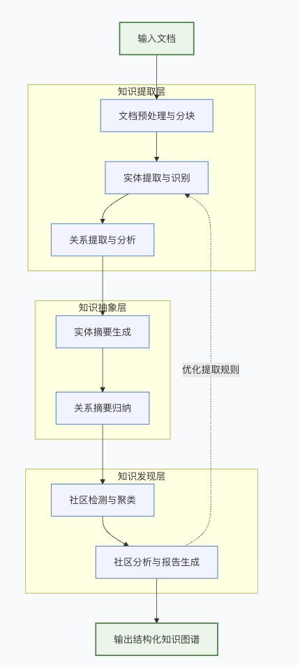 1.P(生产)作为基础,扮演了“知识炼金师”的角色,它通过一套融合了NLP、图算法和LLM推理的复杂流水线,无情地将混沌的文本之矿,冶炼成结构清晰、关联丰富、层次分明的知识金砖——知识图谱与社区报告。