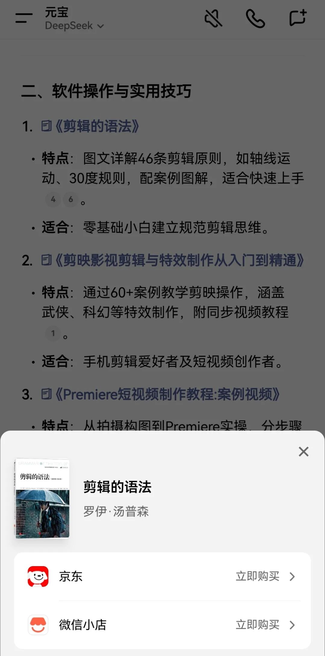 值得一提的是,今年8月腾讯元宝与京东达成合作,只要回答中出现京东在售的书籍名称,书名会自动显示下划线,用户点击后即可跳转至京东购买。尽管目前合作仍局限于图书领域,但这一模式未来极有可能拓展至更多商品品类。