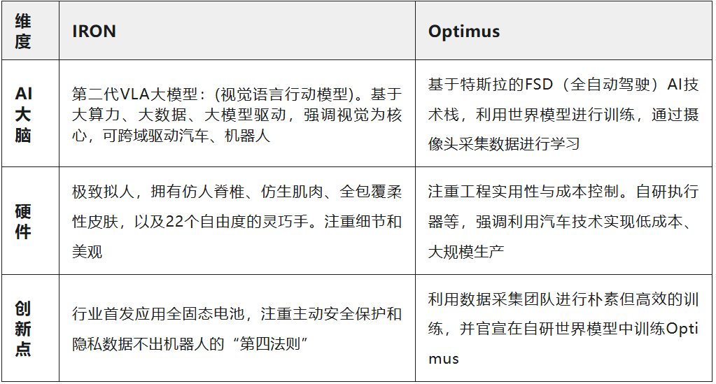 小鹏IRON和特斯拉Optimus,代表了人形机器人赛道的两种不同思路: