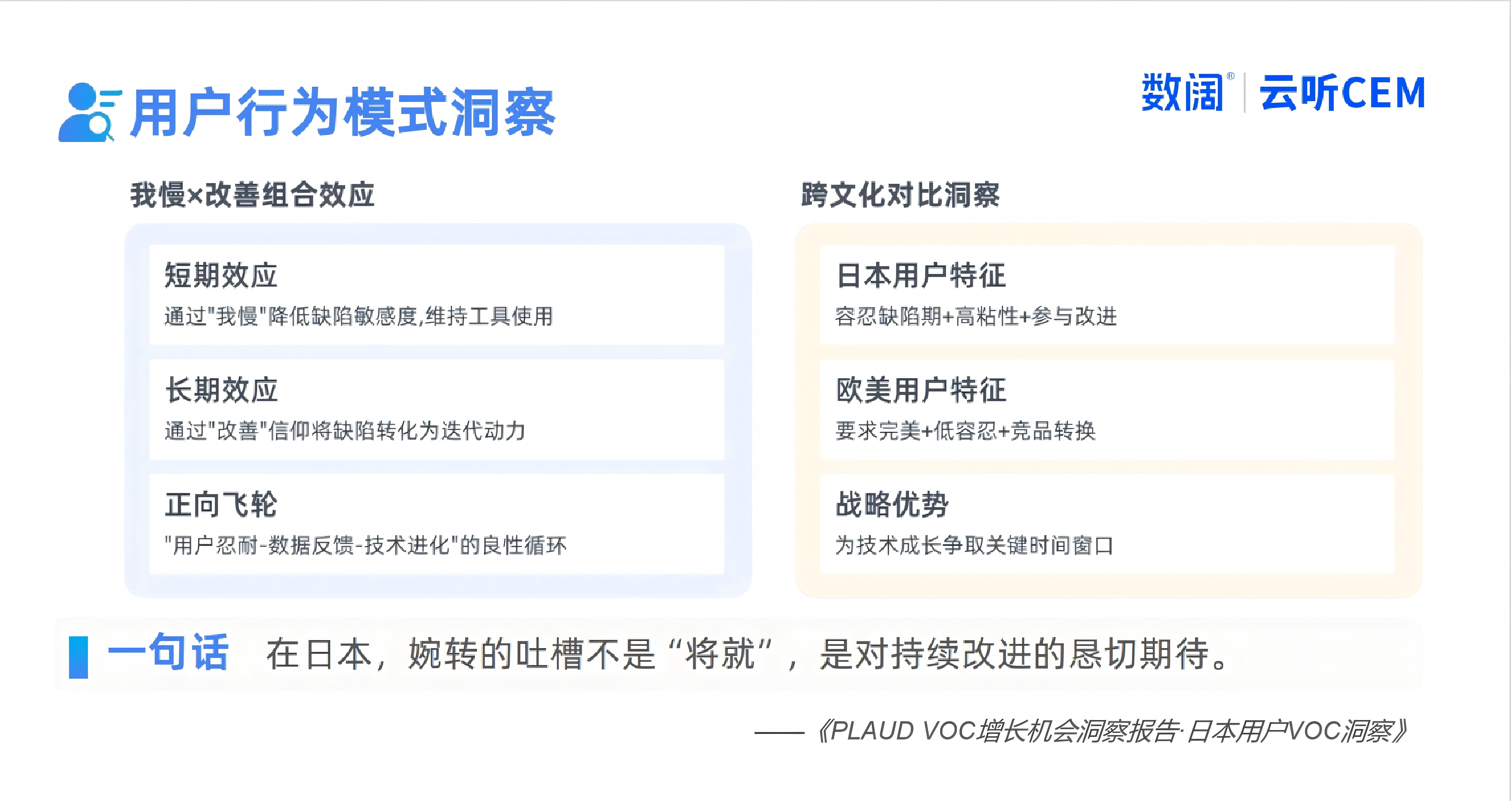 日本市场的需求逻辑极具代表性。“地震应急场景 + Kaizen(改善)文化 + 我慢(忍耐)心理”形成了独特的需求组合:用户关注语音情感识别,即便转录精度未达完美,也愿意等待产品持续进化。这背后是用户对“功能 + 情感共鸣”的双重追求,品牌需将文化符号转化为“共同成长”的产品叙事,而非单纯堆砌技术参数。