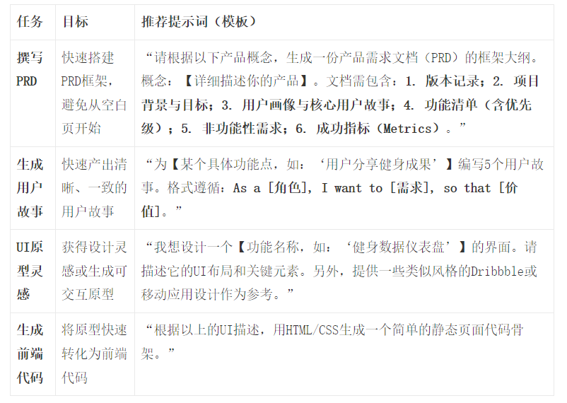 在这个阶段,AI是你的文档助理和原型设计师,帮你将想法转化为可执行方案。