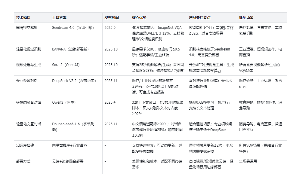 - 《VQA工具组合清单》:包含视觉、视频、对话工具的选型标准、适配场景、接口要求,帮助产品经理快速筛选工具组合。