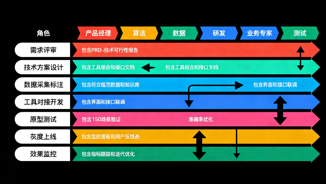交付物:最小原型产品、核心知识库(覆盖80%高频场景)、工具协同测试报告