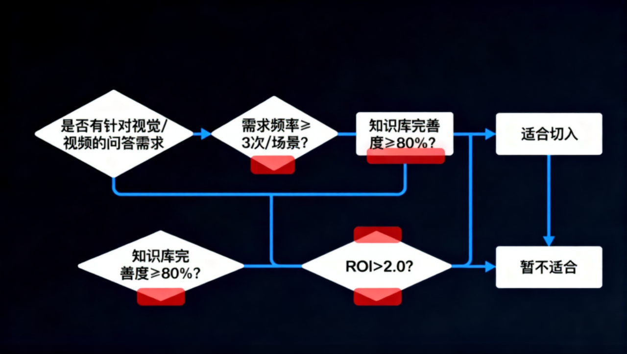 正确做法:先通过“4个维度”判断场景适配性,只有满足“交互依赖度高、单模态缺口大、ROI>2.0”,再考虑接入VQA。