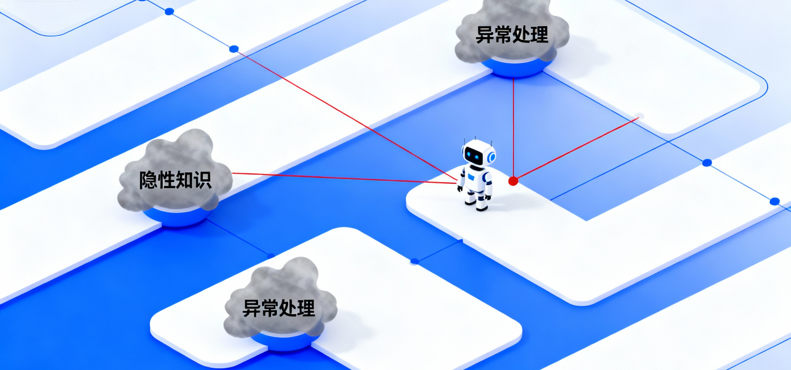 如果这些应对异常的复杂预案没有被显性化并植入Agent的知识库和行动逻辑中,那么Agent在遇到任何偏离“标准路径”的情况时,都会束手无策。