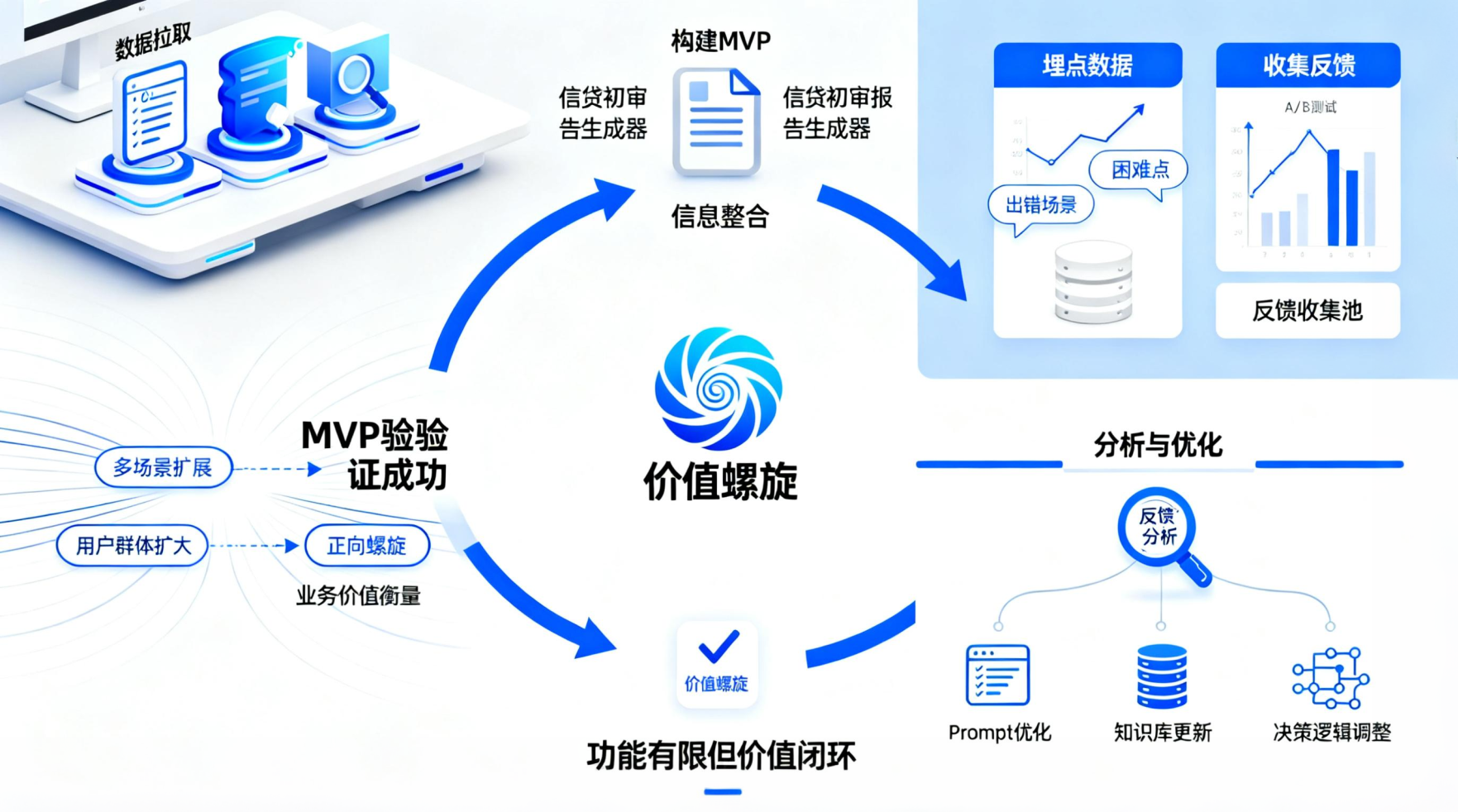 4. 规模化推广:当MVP在一个小范围内被验证成功,并实现了可衡量的业务价值后,再将其逐步推广到更多的场景和更广的用户群体中,形成一个正向的价值螺旋。
