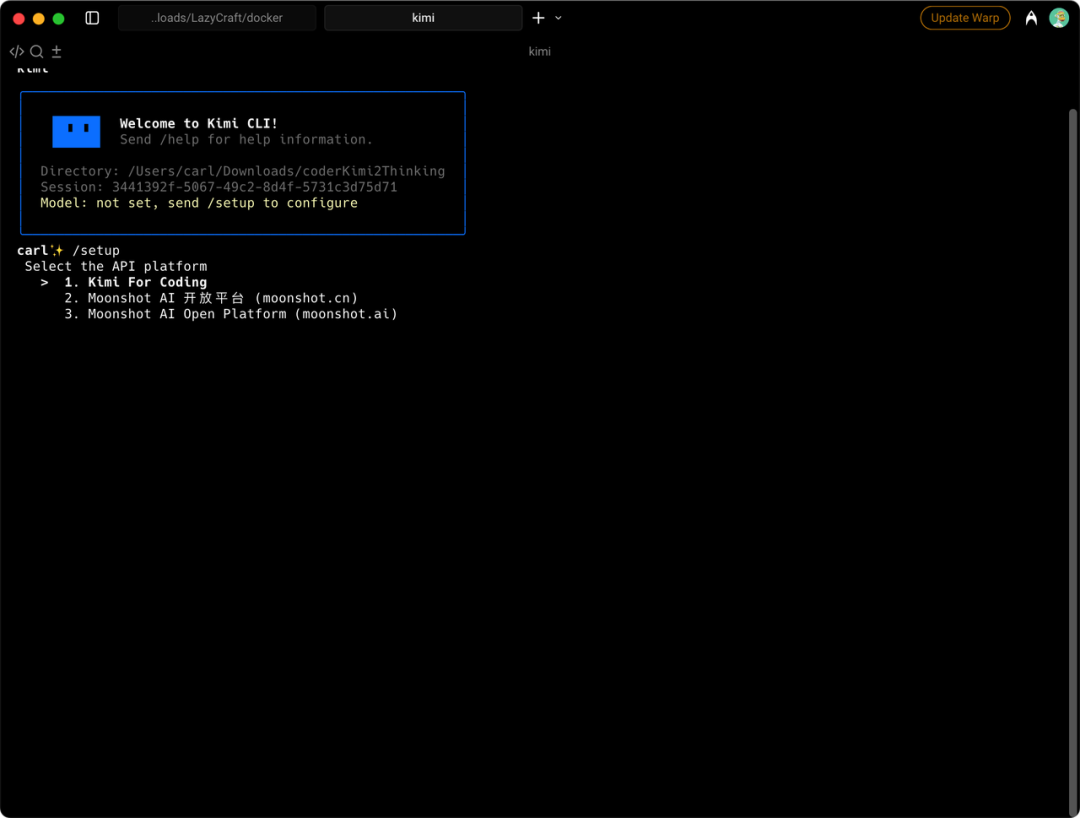 kimi-cli的配置一共是五步,分别是安装uv和kimi-cli,进入对应的文件夹用kimi启动cli,再用setup配置api,安装过程有问题直接丢给网页版Kimi K2 Thinking解决就好(原汤化原食了属于是)。