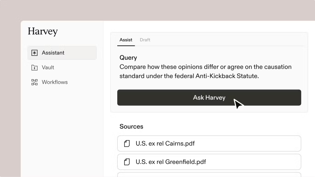 比如,当律师在系统中询问复杂的法规问题时,Harvey 会返回包含完整出处链接的答案。当知识不足时,可以由文件仓库模块补足文件,由此建立私人法律知识库。