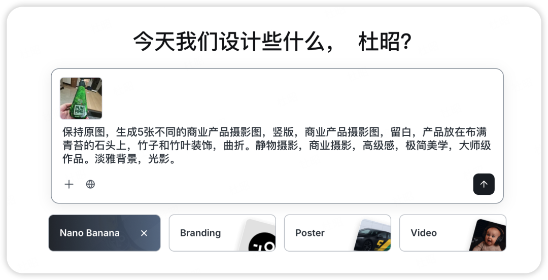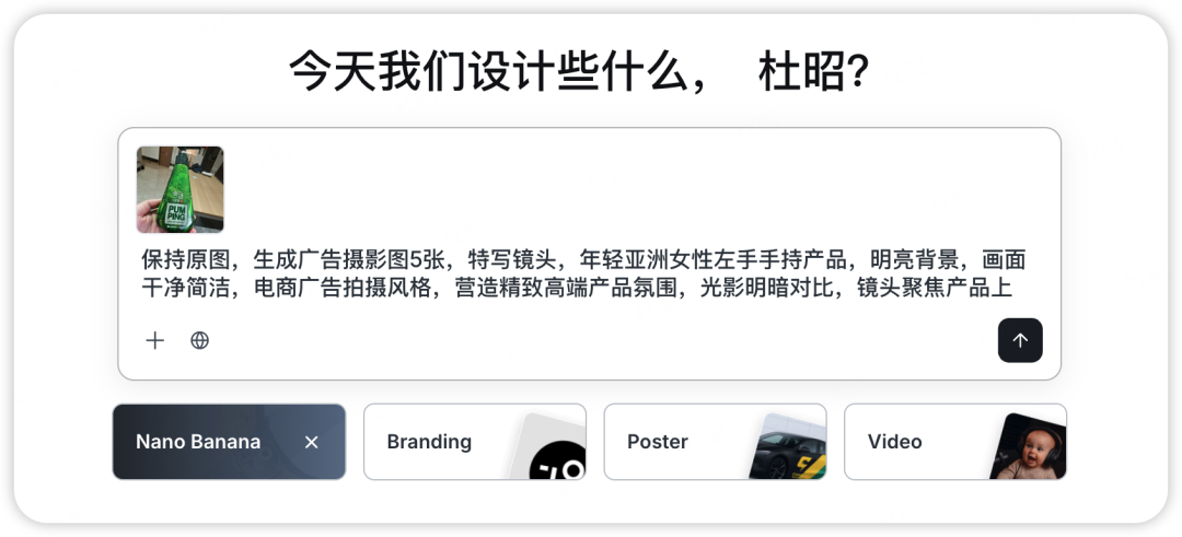 OK,简单测试通过,再试试更难的,在电商设计中,最痛苦的工作就是甲方提出不合理需求,随手发一张实拍图,要求全系列精修海报,带模特的商品图等等,这里我们就继续测试,看看lovart能不能解决这些不合理的要求。