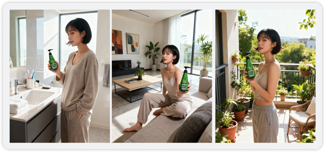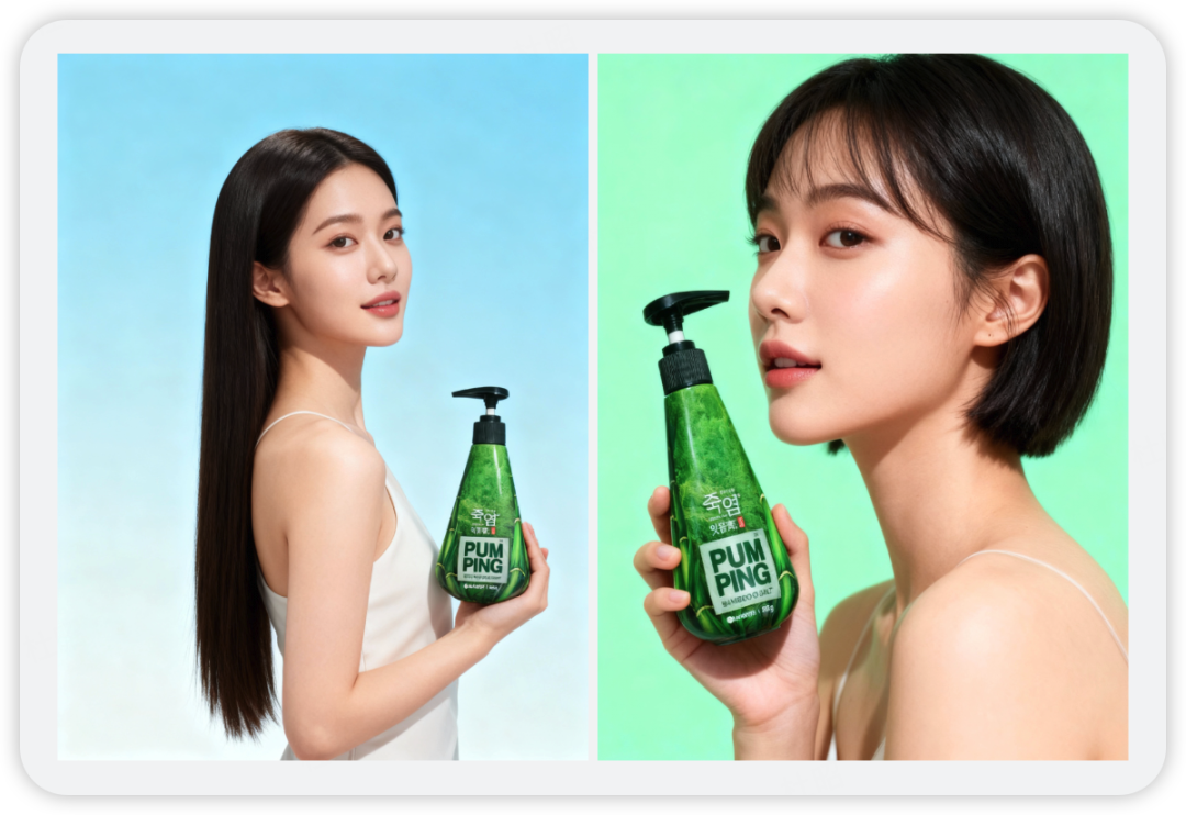 依然使用我拍的牙膏图作为地图,模特形象由模型生成,结果如下: