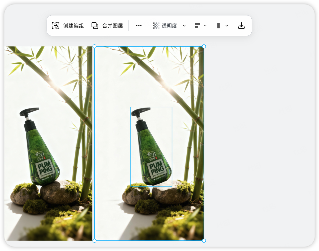 点击后会形成一张新的图片,在新图片中会把不同元素完成分层,就像在传统设计软件中不同图层的概念