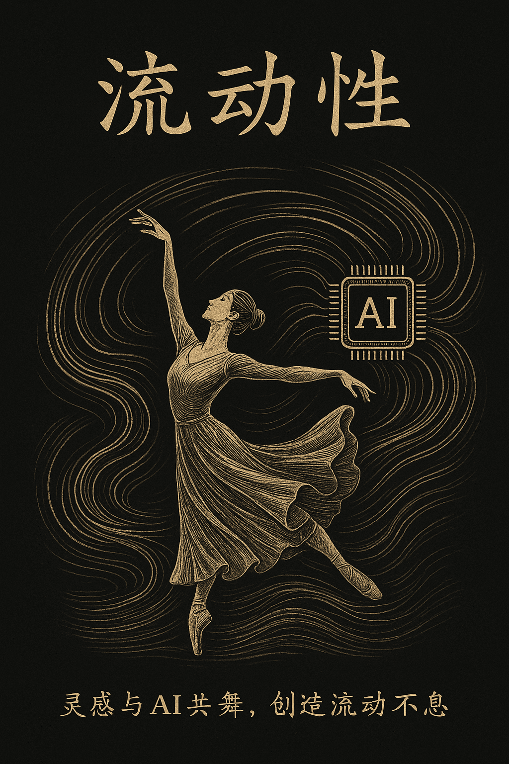 插画:舞者与AI符号,线条环绕,突出流动感。