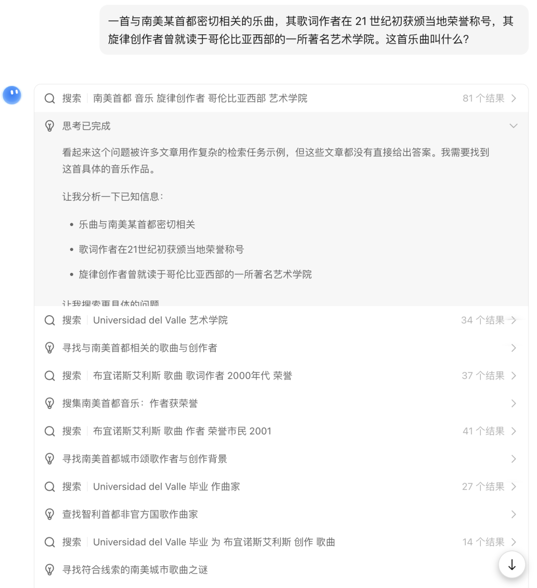 是的,这就是agent 化的思考模型,会自己不断探究问题,寻找真正的答案。这个能力曾经是ok computer/deep reasearch的专属,现在你在普通对话中也可以体验到了。