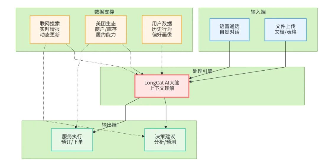 美团通过LongCat,把它在本地生活领域积累的资源、数据和服务能力,都注入到了AI产品中。这就像是给AI装上了一双能直接触达现实世界的手,让它不仅仅能“说”,还能“做”
