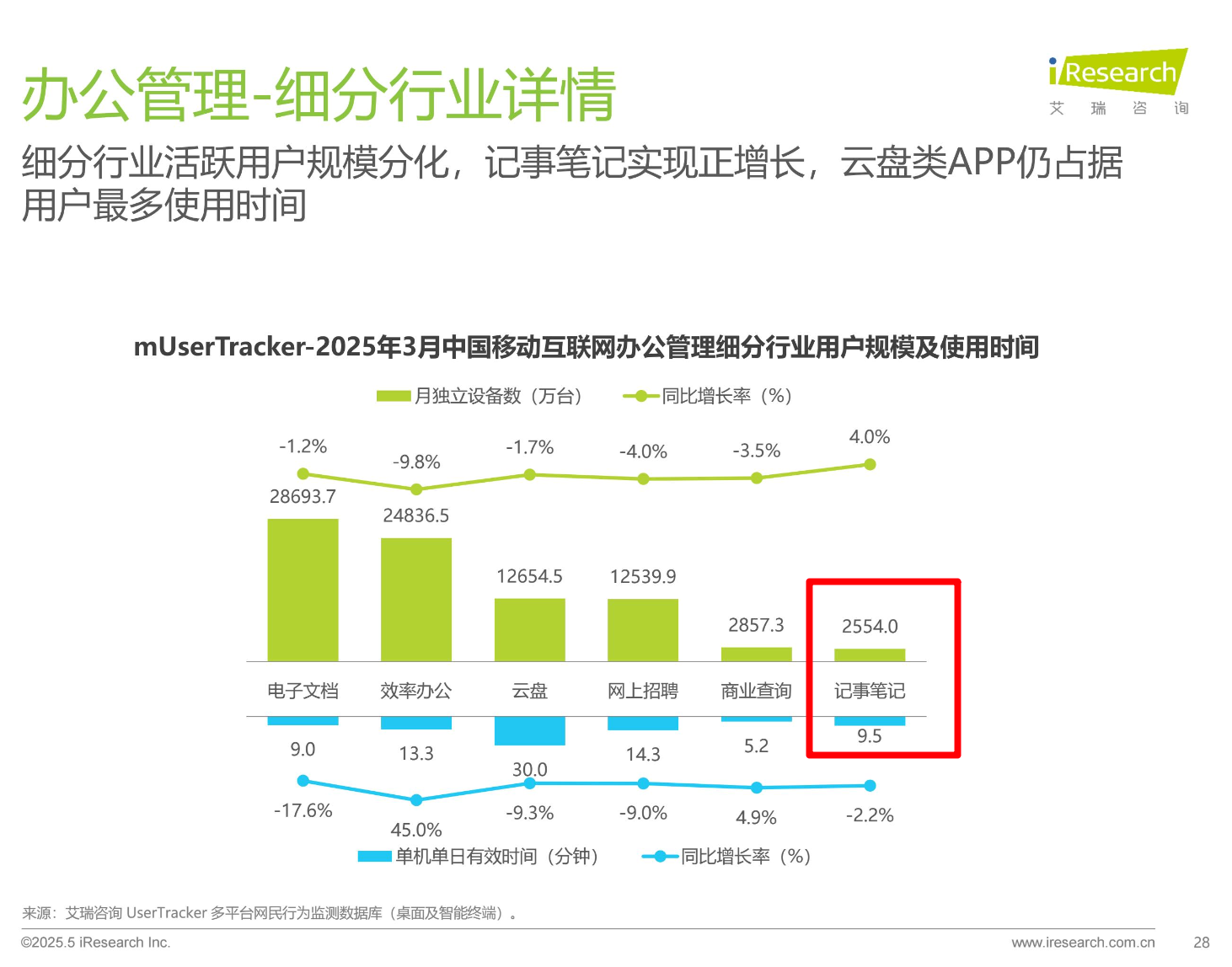 在当今信息爆炸、追求高效率的数字化时代,一款趁手的笔记软件已不再是可有可无的辅助工具,而是构建个人知识管理系统、提升工作效率与学习能力的战略级核心应用。据艾瑞咨询 《2025 Q1中国移动互联网流量季度报告》显示,2025 年 3 月中国移动互联网办公管理细分行业中,记事笔记月独立设备数实现 4.0% 的同比正增长,这一数据印证了笔记软件在用户日常工作学习中的高频渗透。