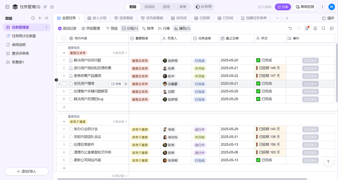 单元格信息聚合:我很喜欢它的“表格即文档”功能。在处理一个复杂需求时,我可以直接在那一行任务格子里写详细的需求说明、插入原型图,甚至附上一段语音解释。所有相关信息都集中在一个地方,团队任何人想了解来龙去脉,点开看就行,不用再去翻聊天记录或找不同的文档。