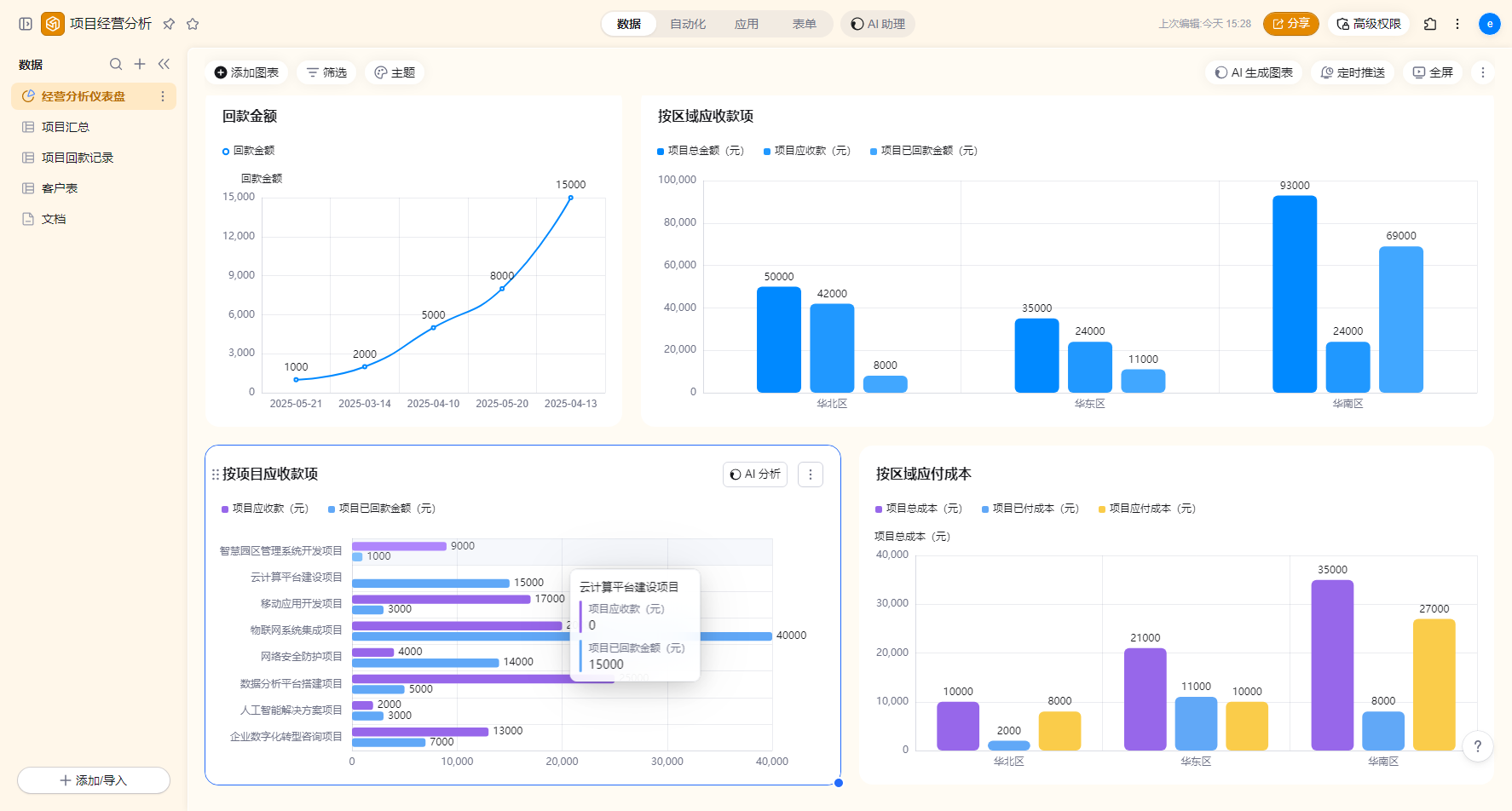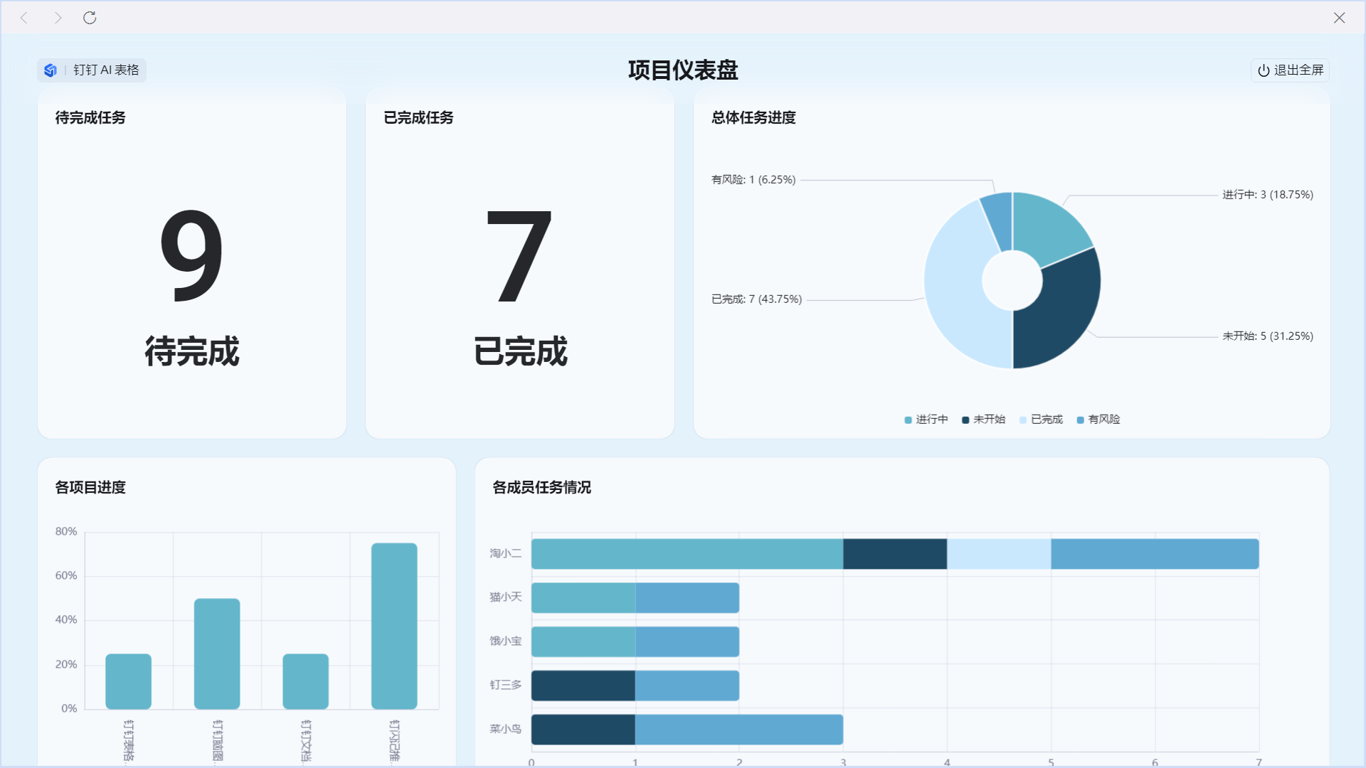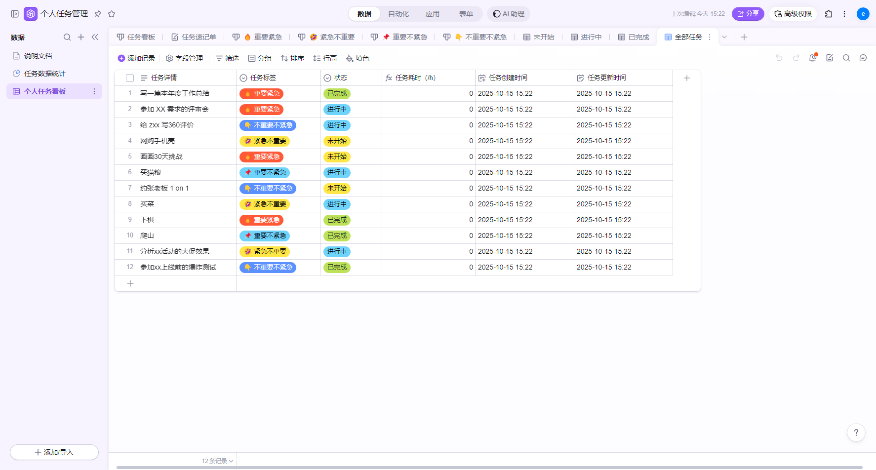 深入使用后我发现,钉钉AI表格更像一个 “数字乐高”——它将数据库、自动化、可视化这些曾经需要技术门槛的能力,封装成了人人都能拖拽组合的积木块。这意味着,它的应用边界远超单一场景: