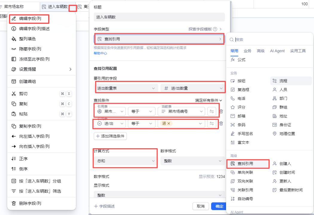 这个字段是通过四则运算算出来的,可以在编辑字段中选择公式。