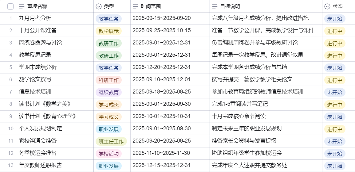 通过这张表,我将原本模糊的年度愿望,转化为了可追踪、可量化、可管理的清晰目标。