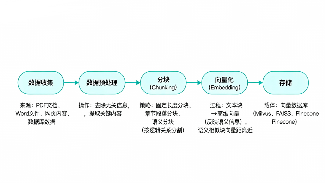 具体怎么做呢?一般要经过几个步骤。首先是数据收集,把各种来源的知识汇集起来——可能是PDF文档、Word文件、网页内容,也可能是数据库里的数据。然后是数据预处理,把这些原始数据“打扫干净”,去掉无关信息,提取关键内容。