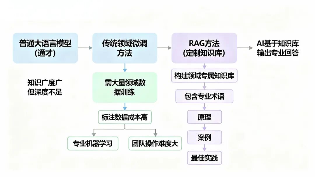要让AI在特定领域变得专业,传统方法是进行领域微调,就是用大量的领域数据去“训练”模型。但这种方法有两个大问题:一是成本高,需要大量的标注数据和计算资源;二是难度大,需要专业的机器学习团队来操作。