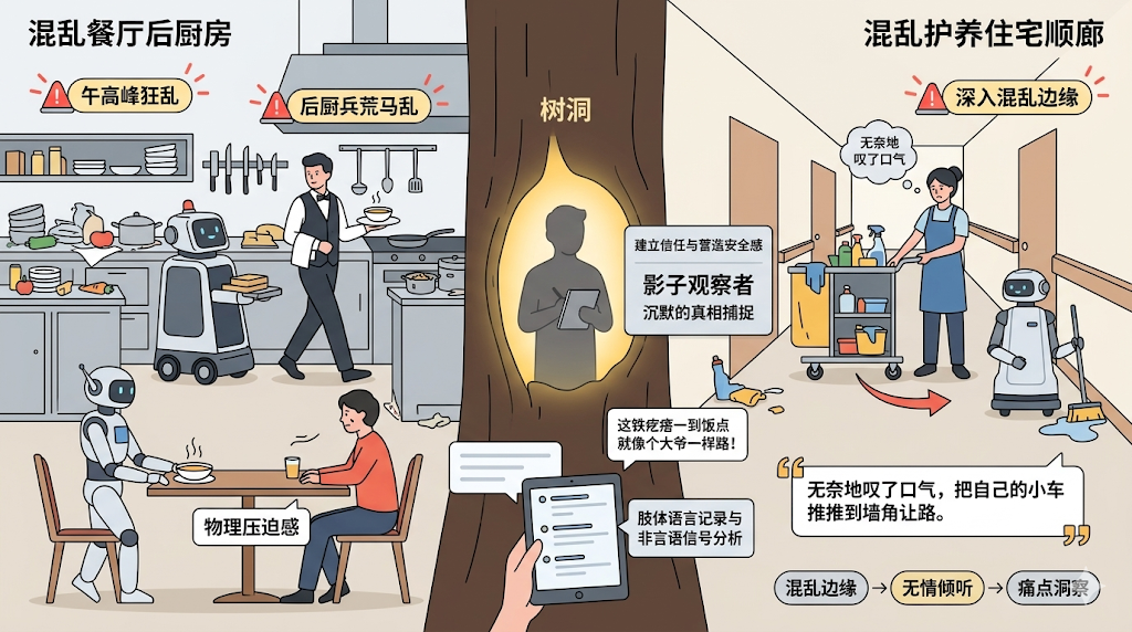 场景A: 当你的送餐机器人靠近一桌顾客时,你不要听顾客怎么夸机器人,你要死死盯着顾客的身体反应——他们是放松地坐着,还是下意识地把椅子往里拉了拉?如果是后者,说明你的机器人底盘太大,或者减速刹车的动作过于突兀,带来了强烈的“物理压迫感”。