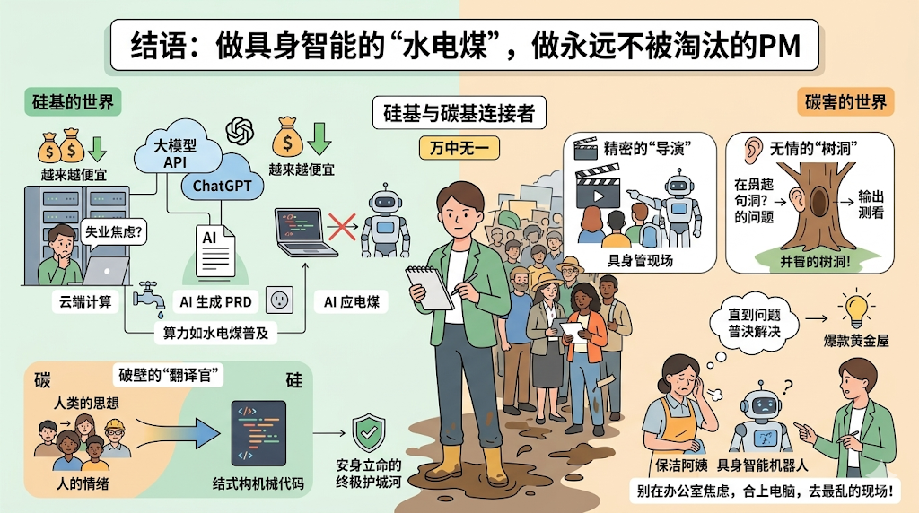 大模型的API会越来越便宜,算力会像自来水一样普及。但那个能连接硅基与碳基世界,做具身智能生态里最不可或缺的“水电煤”的产品经理,永远万里挑一。