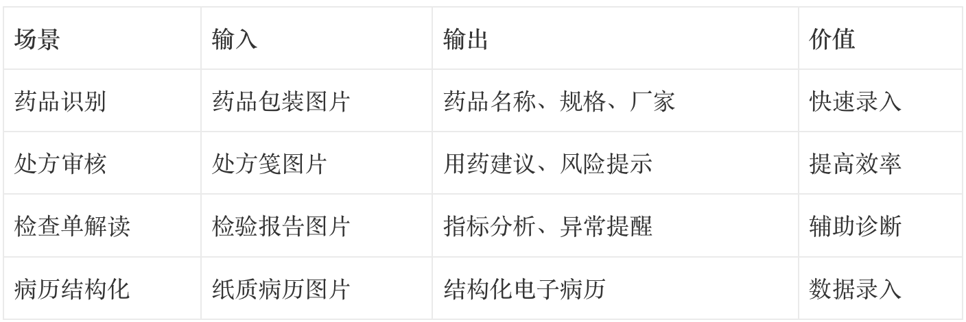 输入:一张 X 光片 + 患者主诉文字 + 医生语音备注 输出:综合诊断建议