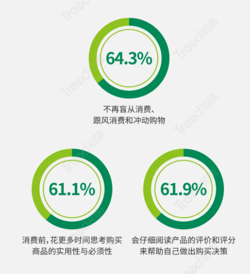 - 64.3%的用户:不再盲从消费、跟风消费和冲动购物