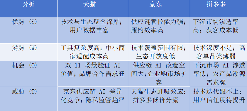五、SWOT 分析:三巨头的 AI 导购竞争力全景
