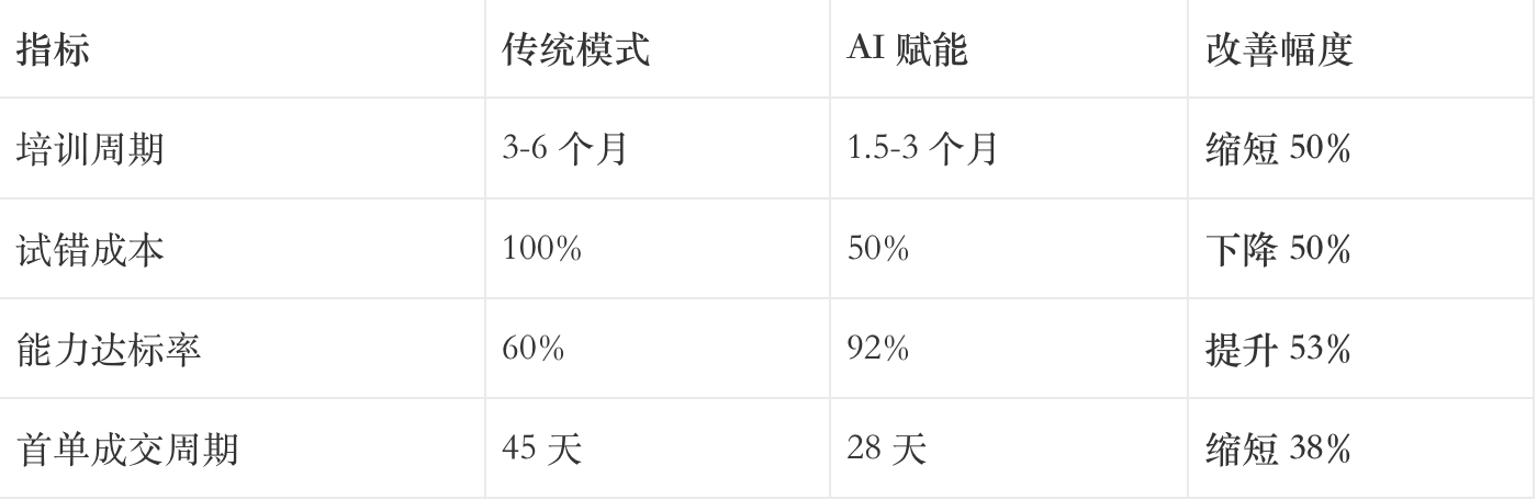 - 主管辅导效率提升 3 倍(从 1 对 5 到 1 对 15)