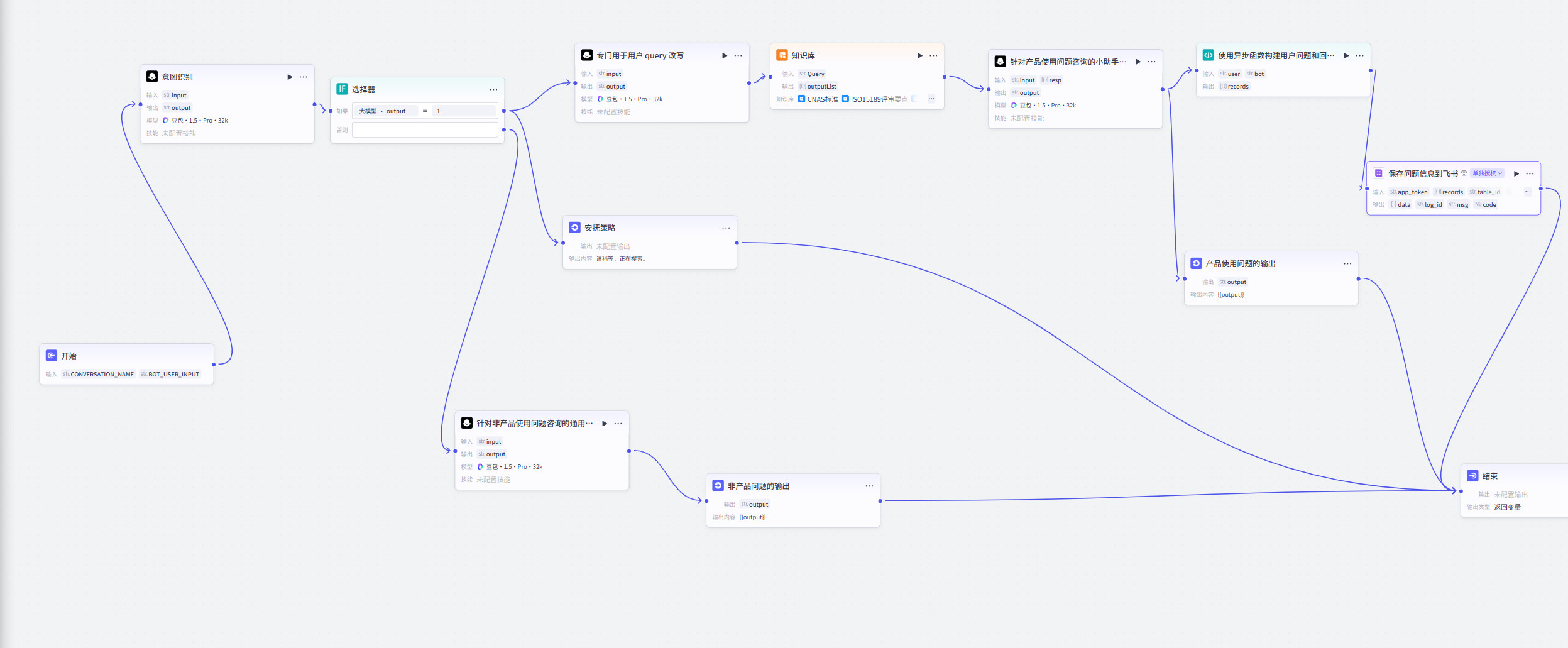 搭建知识库→用户输入→意图识别→分类判断→问题改写→生成回复→数据保存→发布