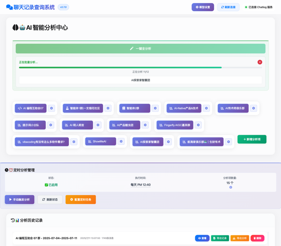 是的,我给它加上了几个我最需要的功能:一键AI分析:可以自己配置好要监控的群聊,一键分析。