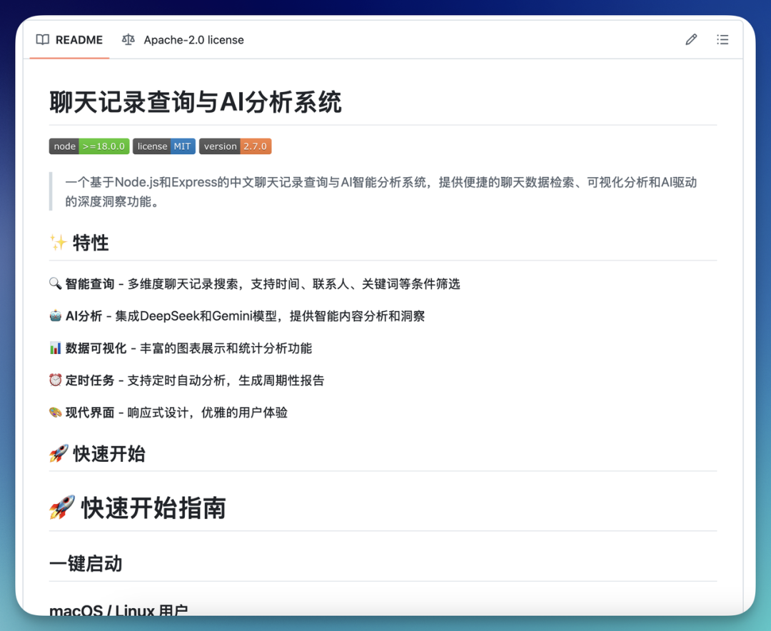具体的安装方法,我在Github的Readme里写的很清楚了,核心就是先装好Chatlog这把“钥匙”,再运行我的WebUI就行。