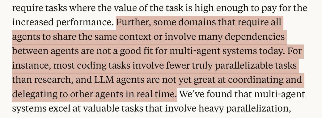 在前文中我们不断提及 Anthropic 针对多智能体系统给出的解决方案,而一个系统,值得Anthropic 花一整篇工程博客、给出如此多的、针对性的解决方案,本身就已经说明这个系统,目前还是过于复杂。