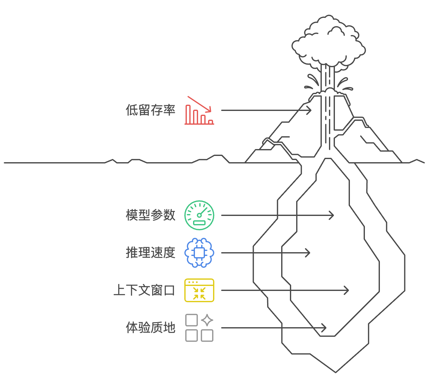 过去十八个月里,模型参数、推理速度、长上下文窗口像高铁一样一路提速;但同一段时间,大部分智能应用的平均日留存率却没有同步上涨。华丽的技术曲线与平淡的商业曲线之间出现了一道越来越宽的缝隙——这说明 决定用户是否留下的,从来不是模型的“量级”,而是体验的“质地”。质地包含三件事: