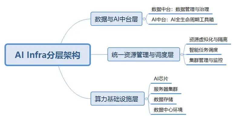 如此规模的AI Infra市场是由复杂而自成体系的技术内容支撑起来的。为了更好地理解AI Infra的内在逻辑与构成,本文将其解构为以下三个核心层次。这些层次并非完全独立,而是紧密协作、层层递进,共同构建起支撑AI大模型从训练、测试到应用的整个生命周期的坚实底座。