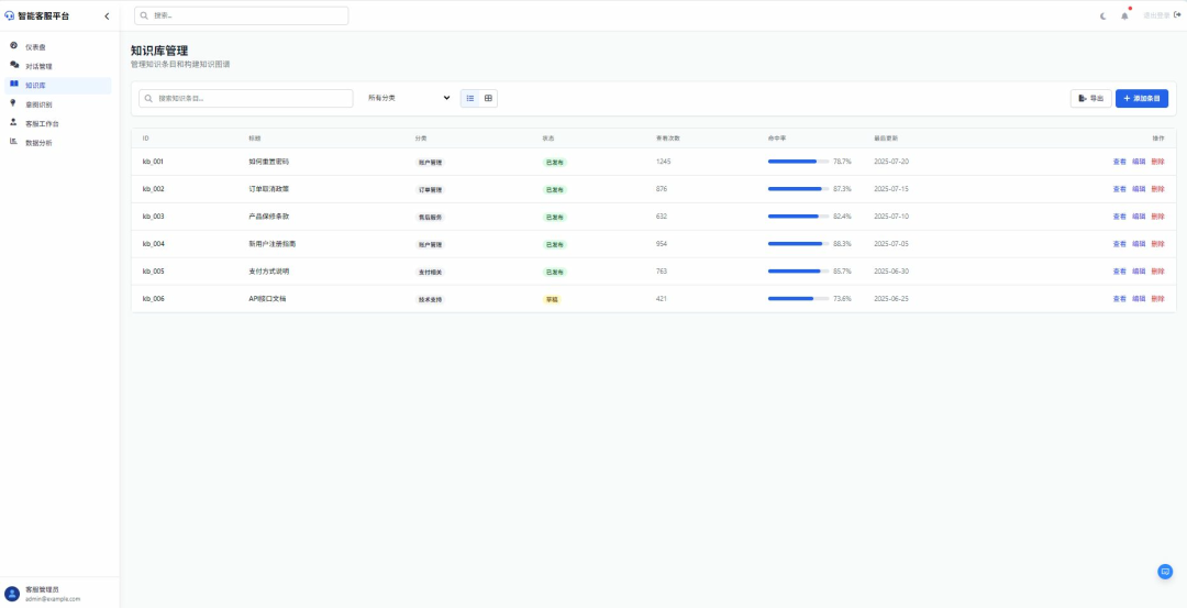 定位:客服系统的 “大脑记忆库”,存储所有可复用的服务信息(如产品信息、政策规则、解决方案),为 AI 和人工客服提供答案支撑。