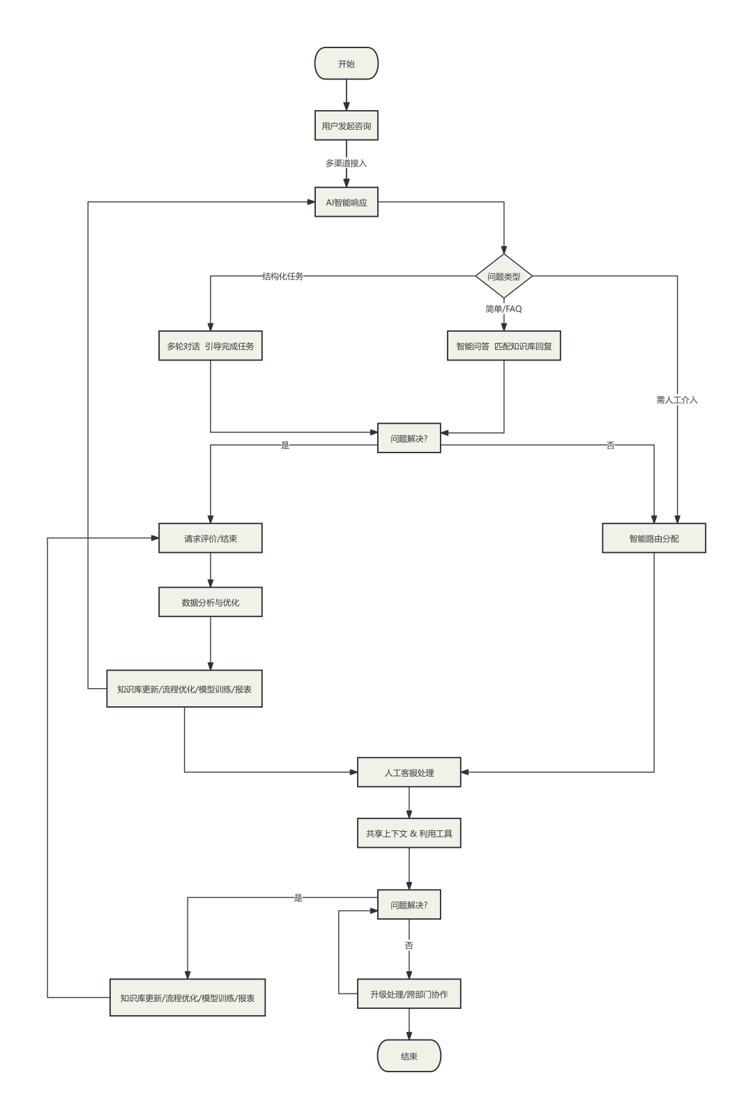 - 处理过程中或完成后,将有价值的新知识/解决方案沉淀回知识库。