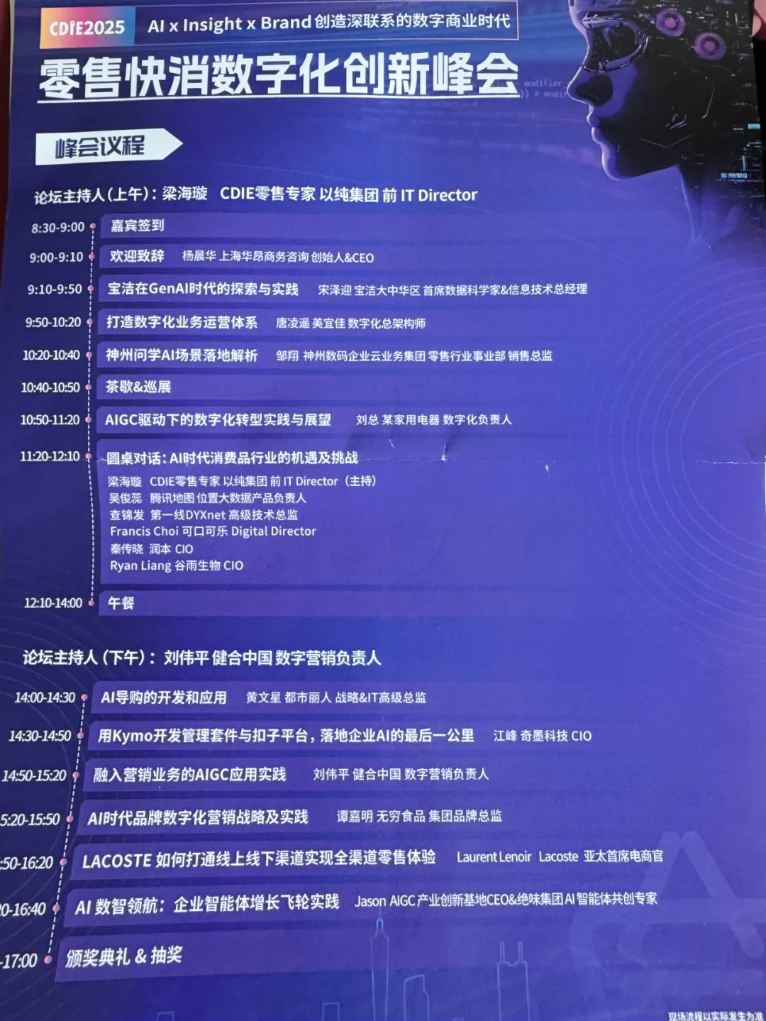 上图就是全天峰会的完整流程,除去那些以「卖货」为目的的分享,我觉得宝洁、美宜佳以及健合集团分享的内核是最为实际客观的。