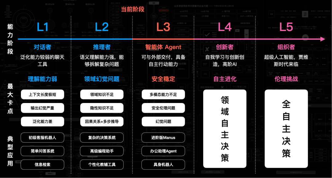 如今我们已经进入L2.5时代,模型本身能力虽然还在发展,但更多是两个点:第一是上下文的长度,这个是为了解决记忆问题;第二是模型的理解能力进一步提升,这个其实当前做得很好了,只不过更垂直领域知识不足;