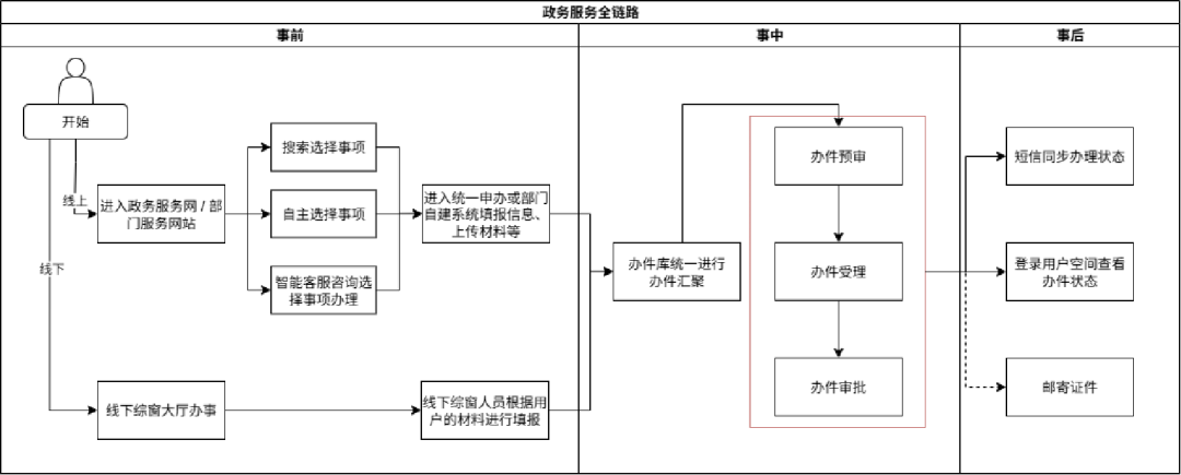 如果我们把政务服务当作一场“服务旅程”,它其实包含三个阶段:事前、事中和事后。