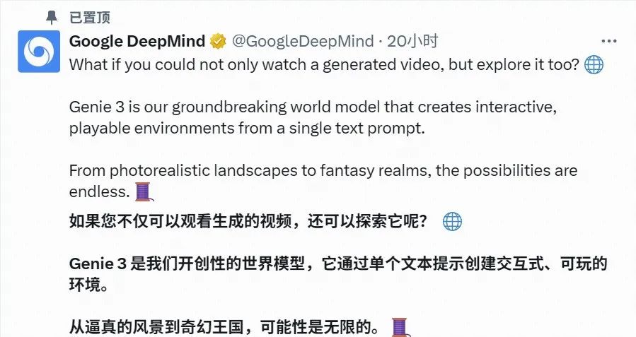 这就是为什么Genie 3感觉更像一个“世界”,而不是一个“电影”。