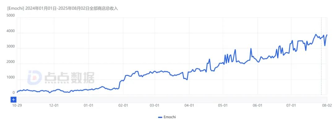 Emochi上线至今全球全部商店收入变化 图源:点点数据