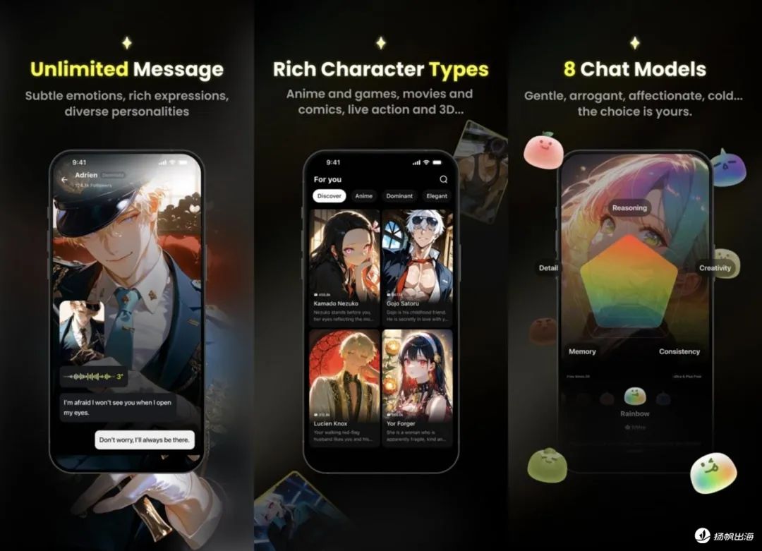 从定制化角色做起,再到内容共创、陪伴感、视觉表达,这一轮AI社交产品的升级,正在向更多元的模式转变。功能设计不仅服务于互动本身,更承载了用户表达、分享和参与的多重动机。