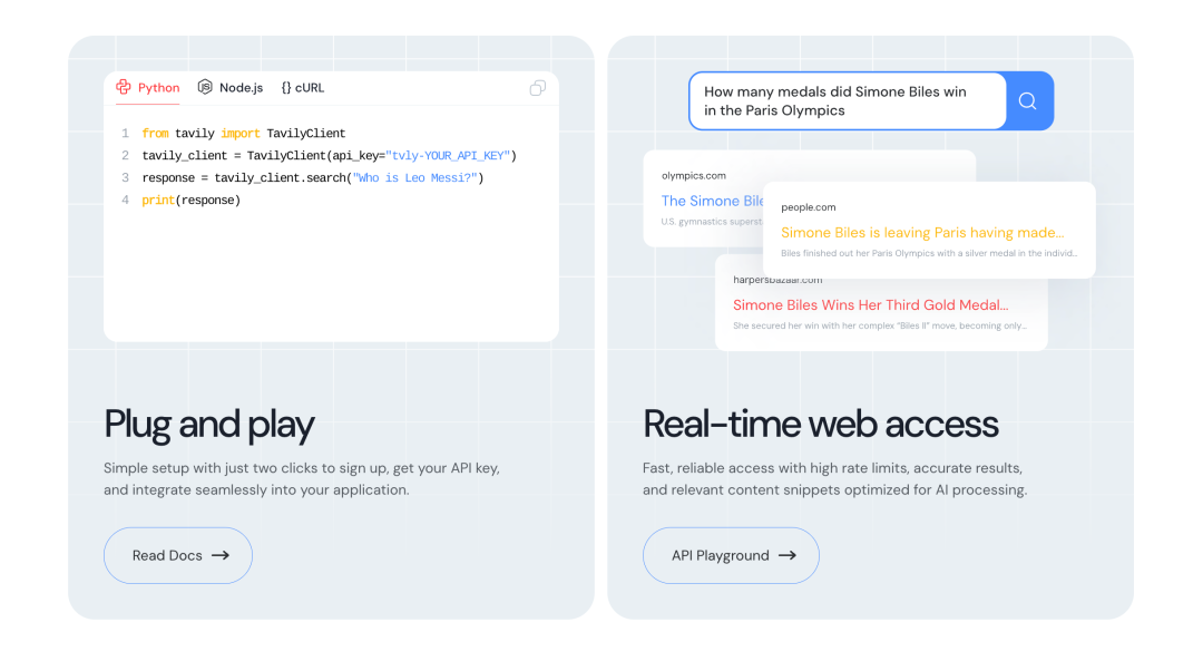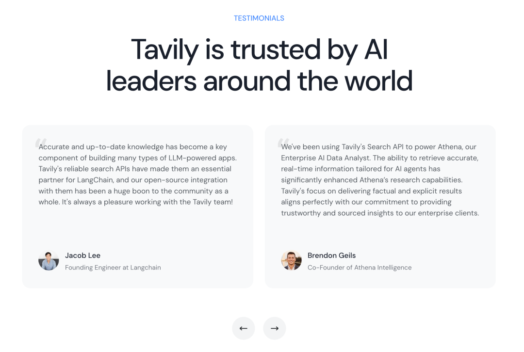 Tavily 的分层服务模式很好地适应了这种需求,他们既提供可以快速集成的标准 API,也提供需要深度合作的企业级定制服务。